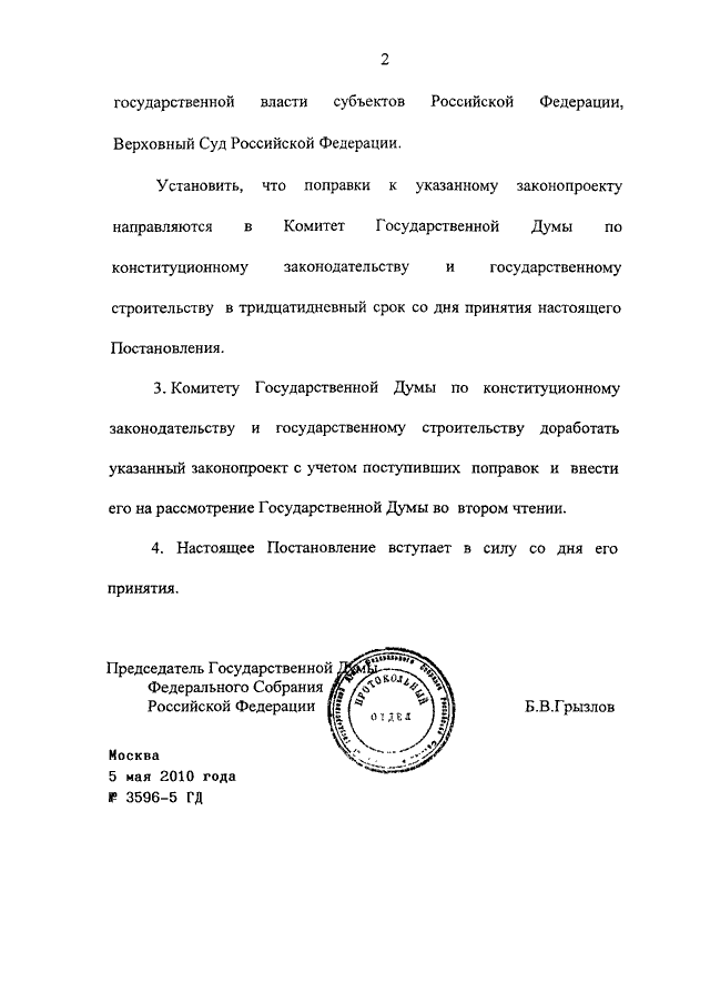 ПОСТАНОВЛЕНИЕ ГД ФС РФ от 05.05.2010 N 3596-5 ГД