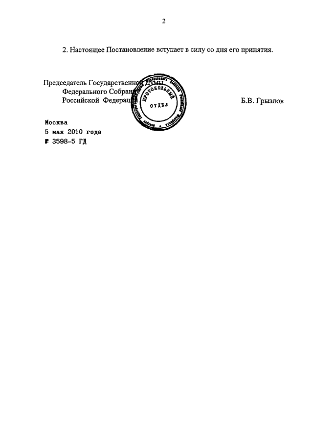 ПОСТАНОВЛЕНИЕ ГД ФС РФ от 05.05.2010 N 3598-5 ГД