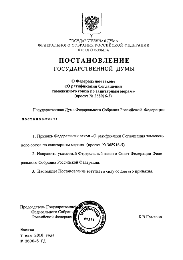 ПОСТАНОВЛЕНИЕ ГД ФС РФ от 07.05.2010 N 3606-5 ГД