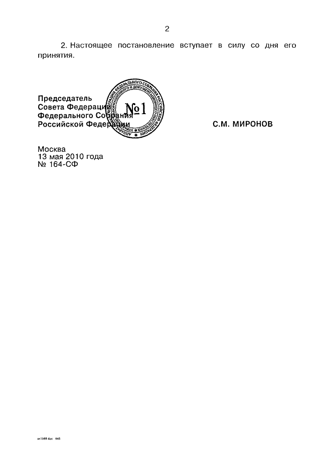 ПОСТАНОВЛЕНИЕ СФ ФС РФ от 13.05.2010 N 164-СФ