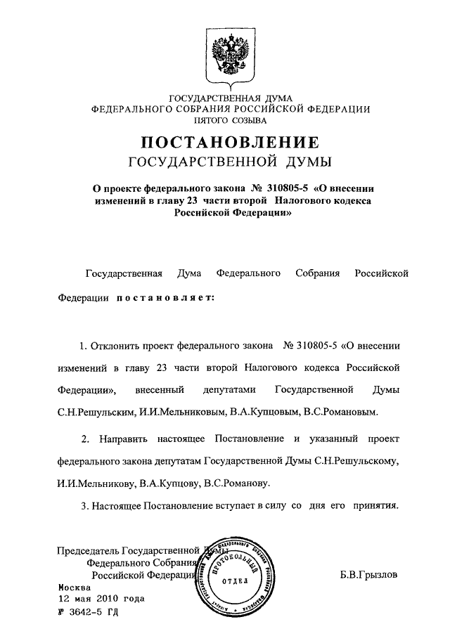 ПОСТАНОВЛЕНИЕ ГД ФС РФ от 12.05.2010 N 3642-5 ГД