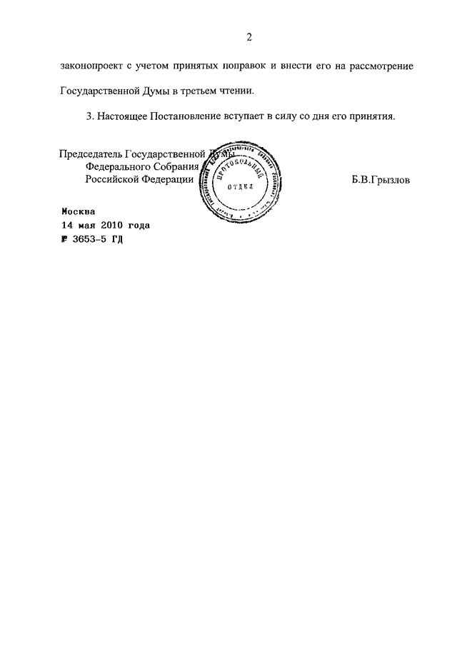 ПОСТАНОВЛЕНИЕ ГД ФС РФ от 14.05.2010 N 3653-5 ГД