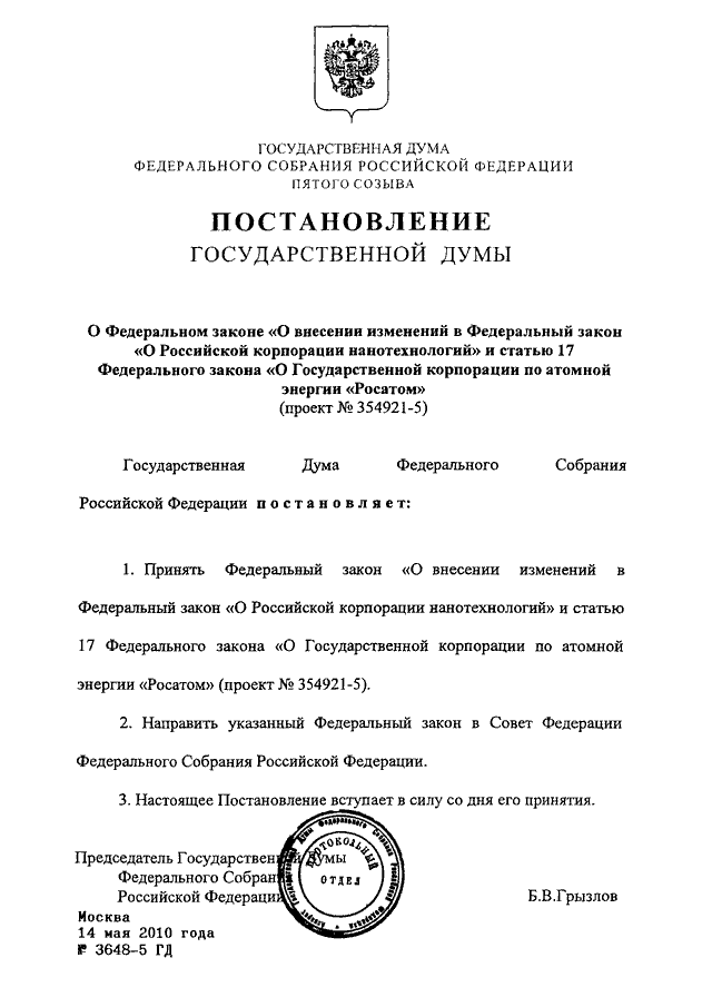 ПОСТАНОВЛЕНИЕ ГД ФС РФ от 14.05.2010 N 3648-5 ГД