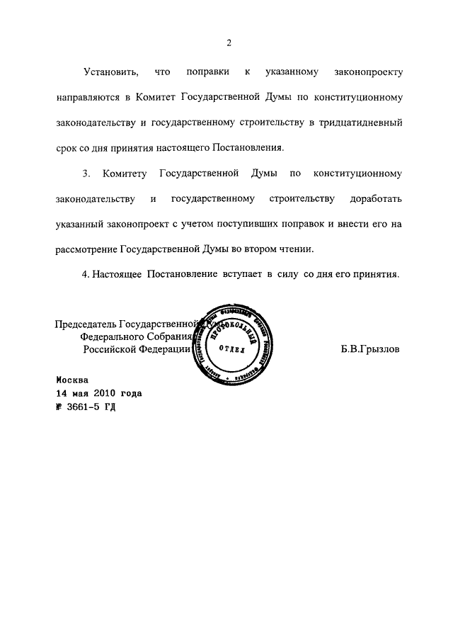 ПОСТАНОВЛЕНИЕ ГД ФС РФ от 14.05.2010 N 3661-5 ГД
