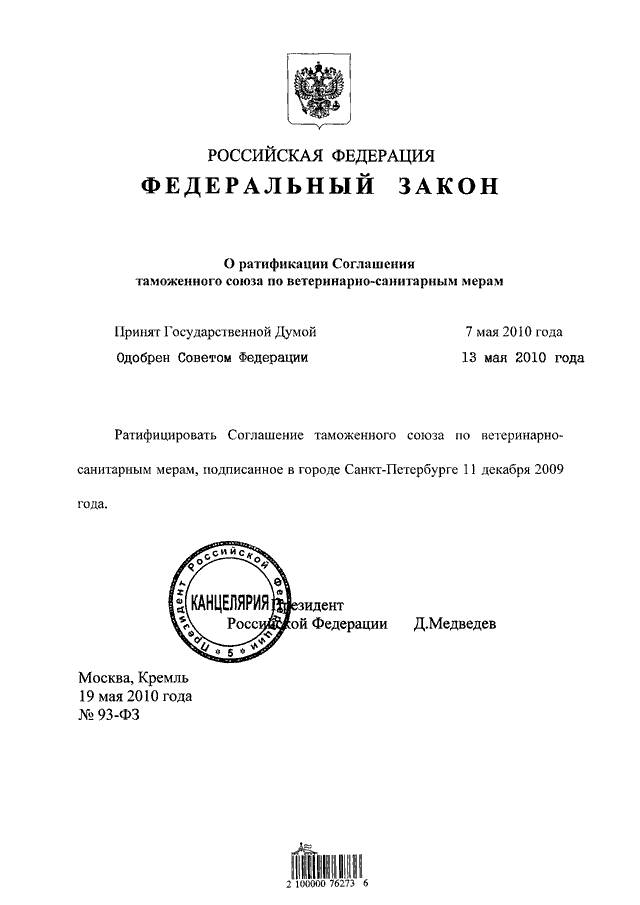 ФЕДЕРАЛЬНЫЙ ЗАКОН от 19.05.2010 N 93-ФЗ