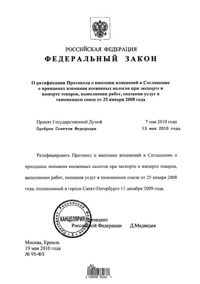 ФЕДЕРАЛЬНЫЙ ЗАКОН от 19.05.2010 N 95-ФЗ