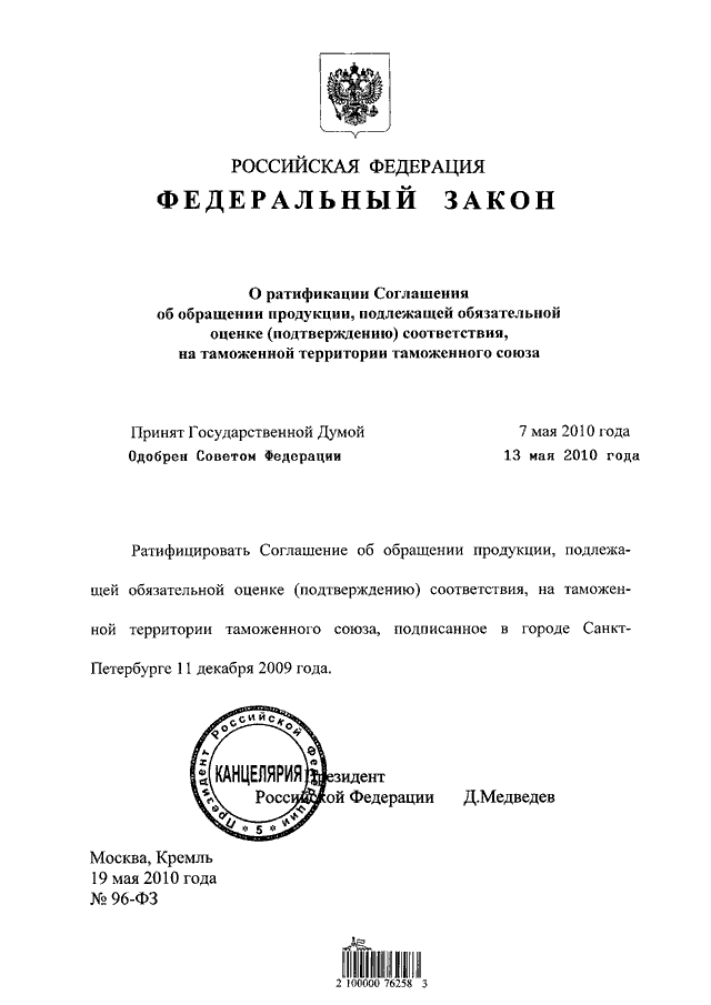 ФЕДЕРАЛЬНЫЙ ЗАКОН от 19.05.2010 N 96-ФЗ