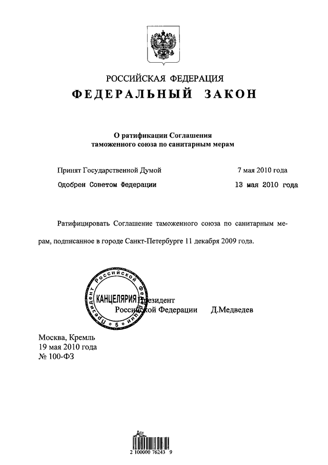 ФЕДЕРАЛЬНЫЙ ЗАКОН от 19.05.2010 N 100-ФЗ