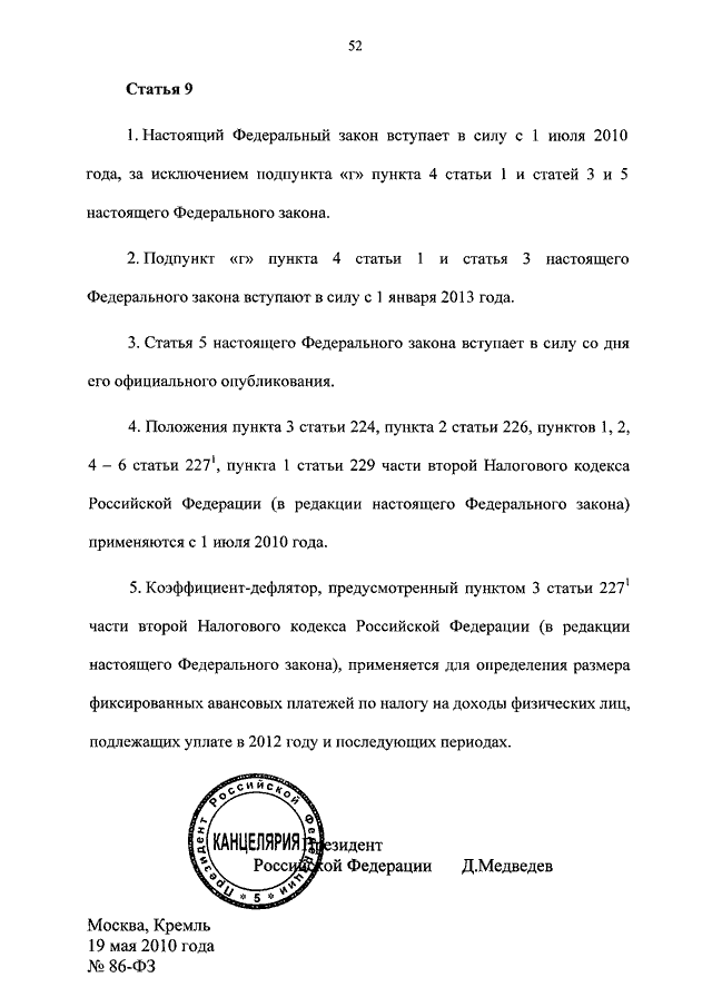 ФЕДЕРАЛЬНЫЙ ЗАКОН от 19.05.2010 N 86-ФЗ