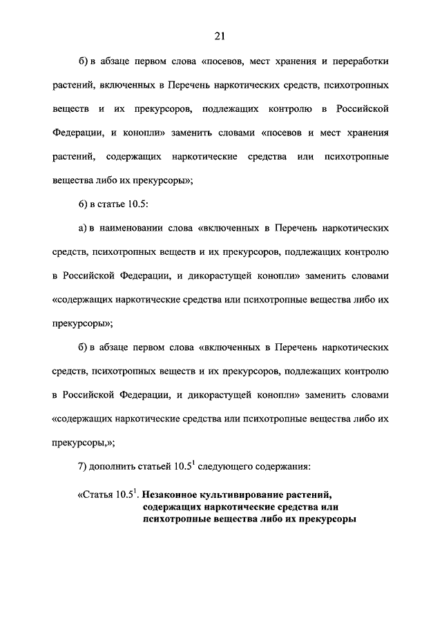 "О ВНЕСЕНИИ ИЗМЕНЕНИЙ В ОТДЕЛЬНЫЕ ЗАКОНОДАТЕЛЬНЫЕ АКТЫ РОССИЙСКОЙ ФЕДЕРАЦИИ ПО ВОПРОСУ КУЛЬТИВИРОВАНИЯ РАСТЕНИЙ, СОДЕРЖАЩИХ НАРКОТИЧЕСКИЕ СРЕДСТВА ИЛИ ПСИХОТРОПНЫЕ ВЕЩЕСТВА ЛИБО ИХ ПРЕКУРСОРЫ"