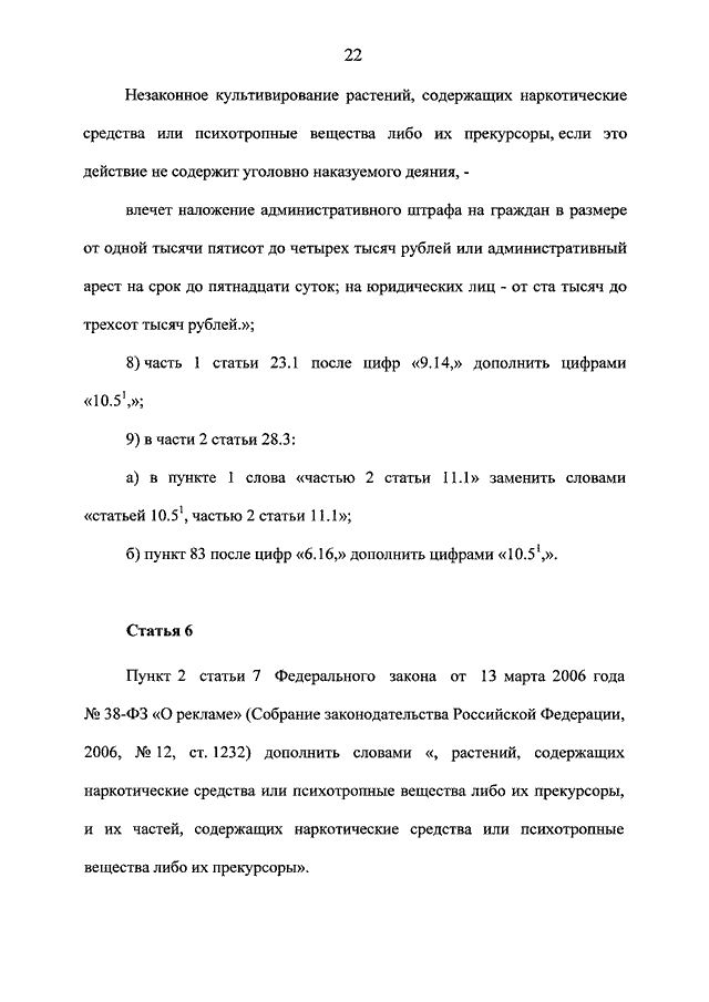 "О ВНЕСЕНИИ ИЗМЕНЕНИЙ В ОТДЕЛЬНЫЕ ЗАКОНОДАТЕЛЬНЫЕ АКТЫ РОССИЙСКОЙ ФЕДЕРАЦИИ ПО ВОПРОСУ КУЛЬТИВИРОВАНИЯ РАСТЕНИЙ, СОДЕРЖАЩИХ НАРКОТИЧЕСКИЕ СРЕДСТВА ИЛИ ПСИХОТРОПНЫЕ ВЕЩЕСТВА ЛИБО ИХ ПРЕКУРСОРЫ"