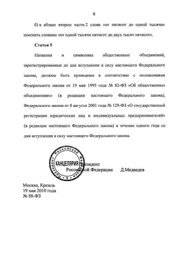 ФЕДЕРАЛЬНЫЙ ЗАКОН от 19.05.2010 N 88-ФЗ