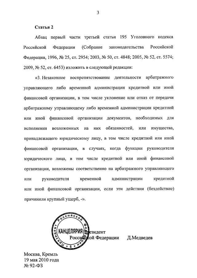 ФЕДЕРАЛЬНЫЙ ЗАКОН от 19.05.2010 N 92-ФЗ