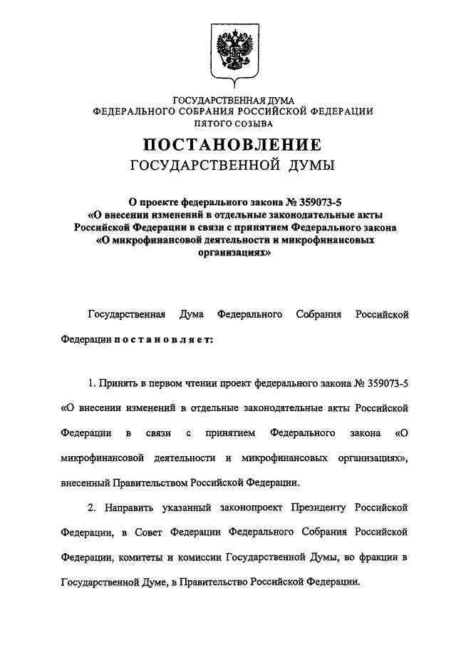 ПРИНЯТИЕМ ФЕДЕРАЛЬНОГО ЗАКОНА "О МИКРОФИНАНСОВОЙ ДЕЯТЕЛЬНОСТИ И