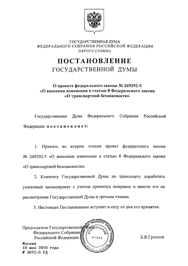 ПОСТАНОВЛЕНИЕ ГД ФС РФ от 19.05.2010 N 3672-5 ГД
