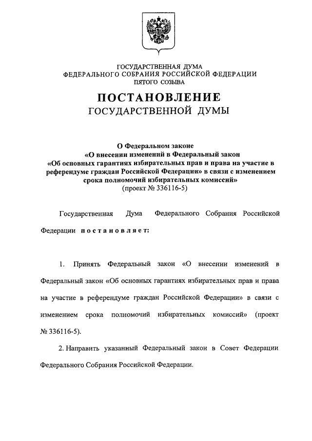 СРОКА ПОЛНОМОЧИЙ ИЗБИРАТЕЛЬНЫХ КОМИССИЙ" (ПРОЕКТ N 336116-5)"