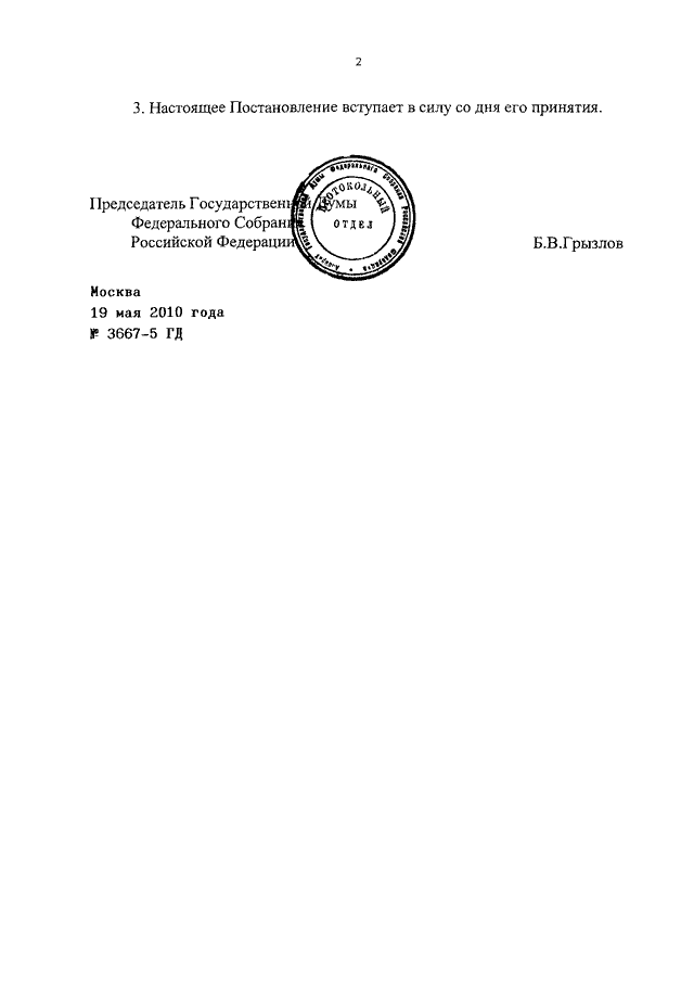 ПОСТАНОВЛЕНИЕ ГД ФС РФ от 19.05.2010 N 3667-5 ГД