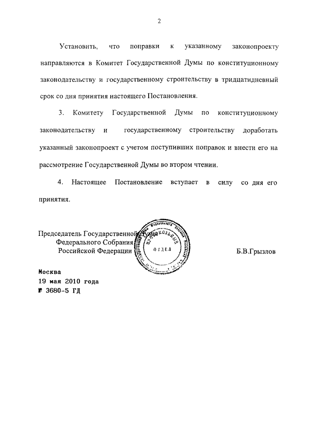 ПОСТАНОВЛЕНИЕ ГД ФС РФ от 19.05.2010 N 3680-5 ГД