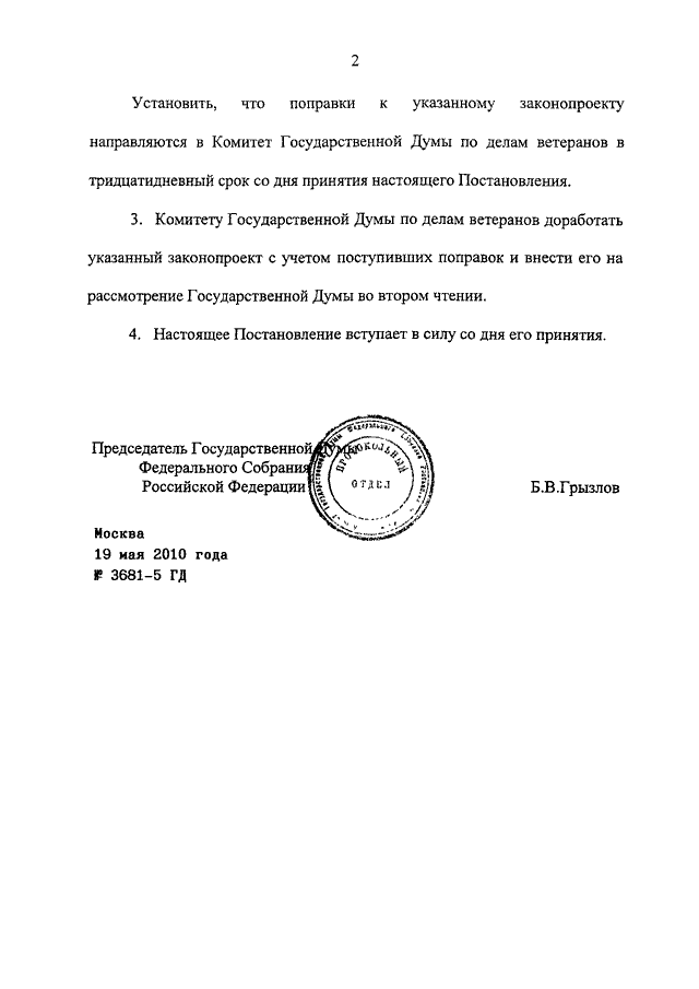 ПОСТАНОВЛЕНИЕ ГД ФС РФ от 19.05.2010 N 3681-5 ГД