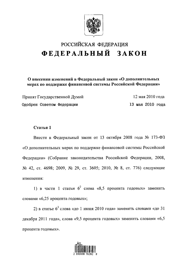 ФЕДЕРАЛЬНЫЙ ЗАКОН от 22.05.2010 N 101-ФЗ