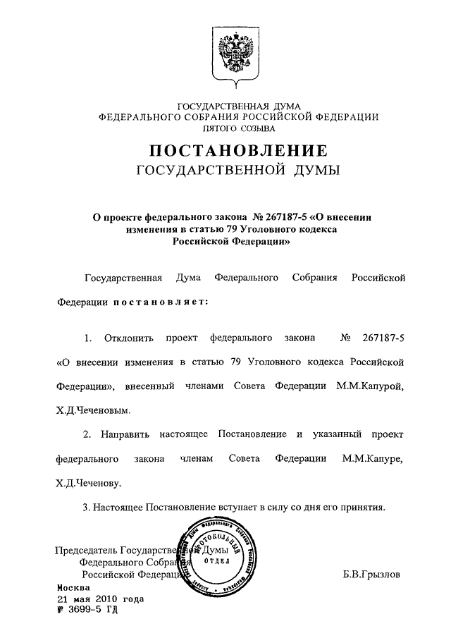 ПОСТАНОВЛЕНИЕ ГД ФС РФ от 21.05.2010 N 3699-5 ГД