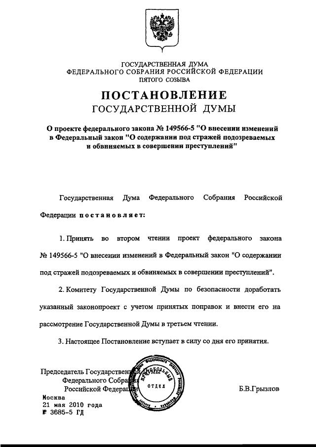 ПОСТАНОВЛЕНИЕ ГД ФС РФ от 21.05.2010 N 3685-5 ГД