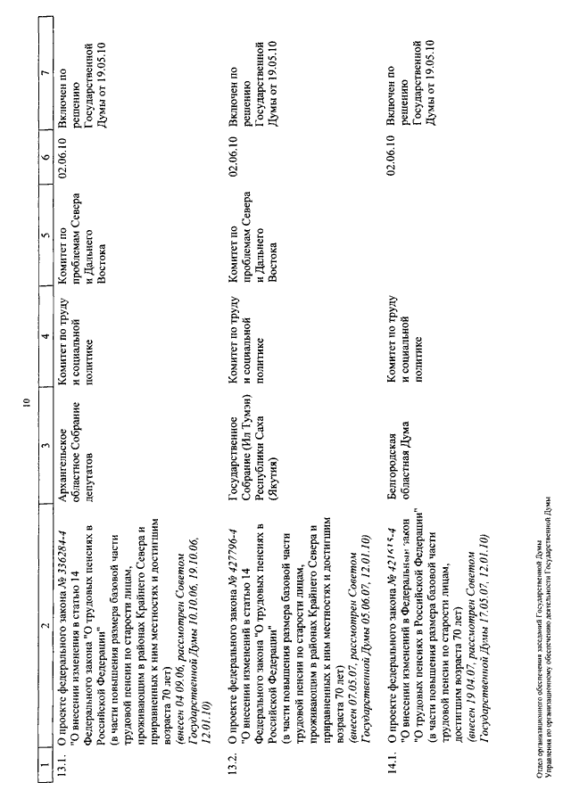 "О КАЛЕНДАРЕ РАССМОТРЕНИЯ ВОПРОСОВ ГОСУДАРСТВЕННОЙ ДУМОЙ СО 2 ПО 18 ИЮНЯ 2010 ГОДА"