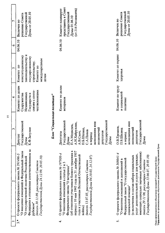 "О КАЛЕНДАРЕ РАССМОТРЕНИЯ ВОПРОСОВ ГОСУДАРСТВЕННОЙ ДУМОЙ СО 2 ПО 18 ИЮНЯ 2010 ГОДА"