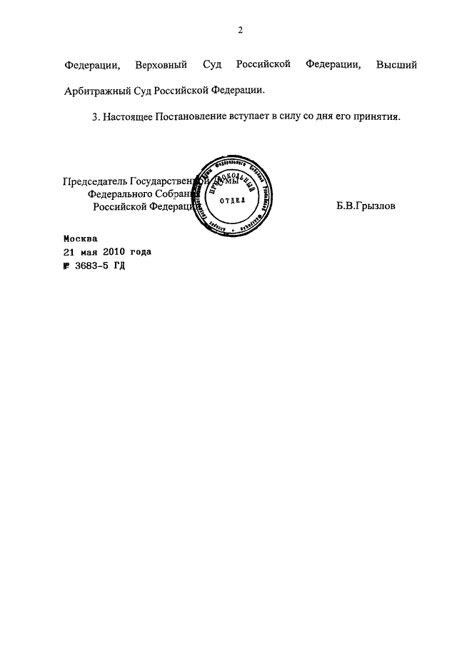 ПОСТАНОВЛЕНИЕ ГД ФС РФ от 21.05.2010 N 3683-5 ГД