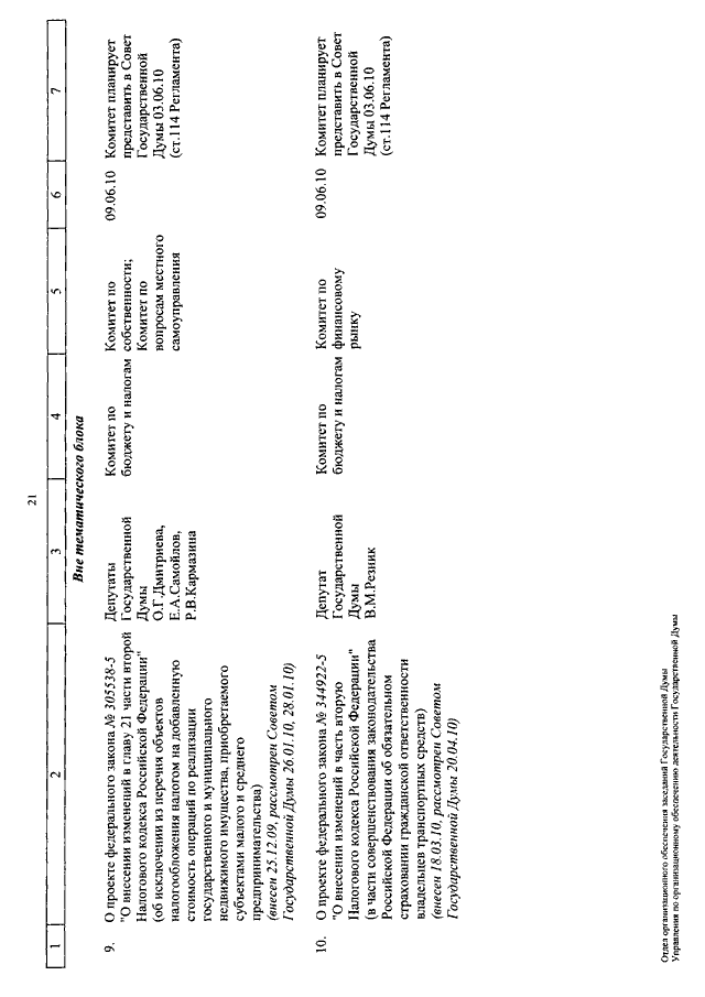 "О КАЛЕНДАРЕ РАССМОТРЕНИЯ ВОПРОСОВ ГОСУДАРСТВЕННОЙ ДУМОЙ СО 2 ПО 18 ИЮНЯ 2010 ГОДА"