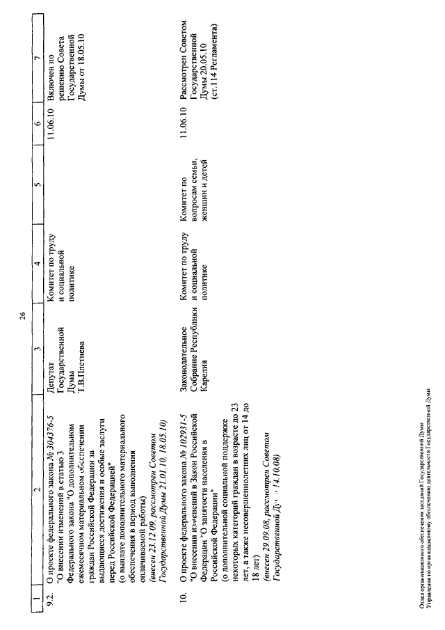 "О КАЛЕНДАРЕ РАССМОТРЕНИЯ ВОПРОСОВ ГОСУДАРСТВЕННОЙ ДУМОЙ СО 2 ПО 18 ИЮНЯ 2010 ГОДА"
