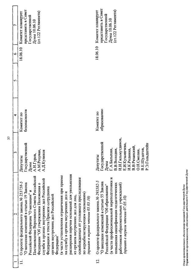 "О КАЛЕНДАРЕ РАССМОТРЕНИЯ ВОПРОСОВ ГОСУДАРСТВЕННОЙ ДУМОЙ СО 2 ПО 18 ИЮНЯ 2010 ГОДА"