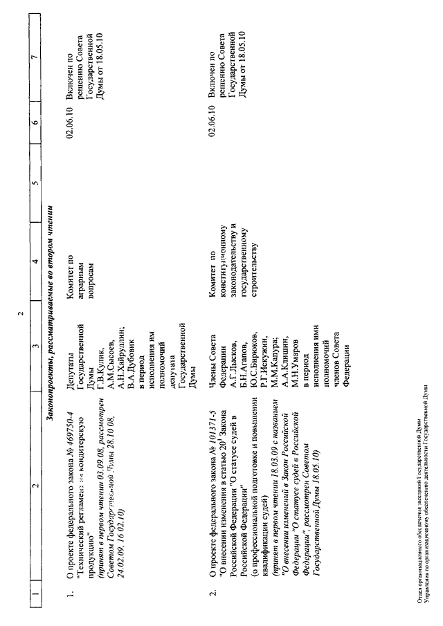 "О КАЛЕНДАРЕ РАССМОТРЕНИЯ ВОПРОСОВ ГОСУДАРСТВЕННОЙ ДУМОЙ СО 2 ПО 18 ИЮНЯ 2010 ГОДА"
