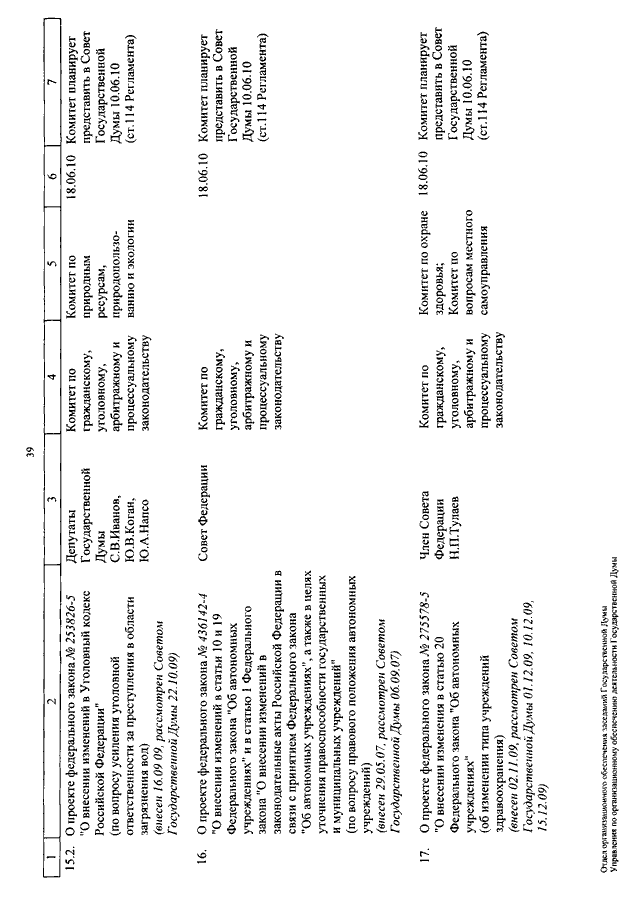 "О КАЛЕНДАРЕ РАССМОТРЕНИЯ ВОПРОСОВ ГОСУДАРСТВЕННОЙ ДУМОЙ СО 2 ПО 18 ИЮНЯ 2010 ГОДА"