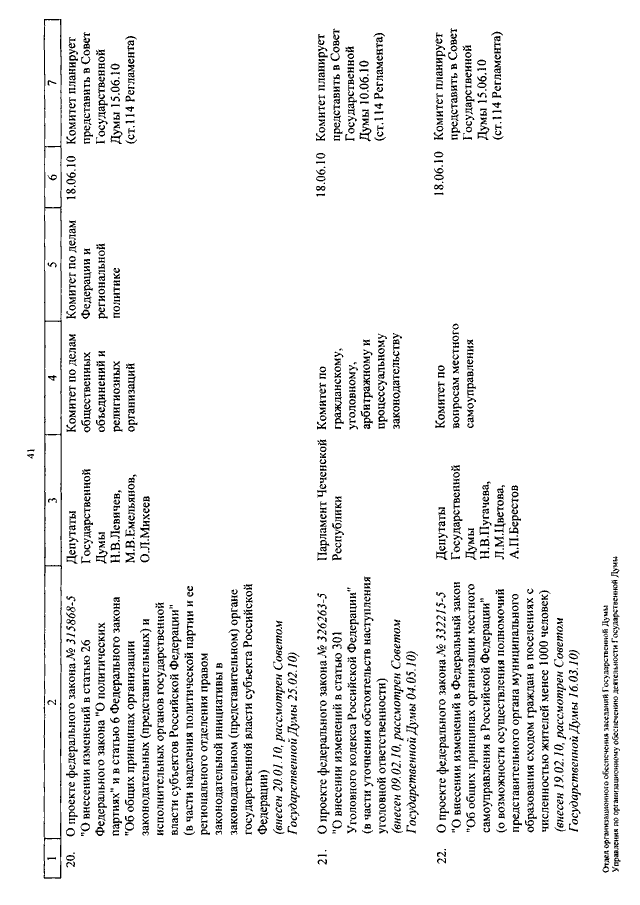 "О КАЛЕНДАРЕ РАССМОТРЕНИЯ ВОПРОСОВ ГОСУДАРСТВЕННОЙ ДУМОЙ СО 2 ПО 18 ИЮНЯ 2010 ГОДА"