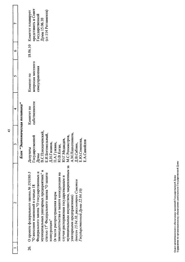 "О КАЛЕНДАРЕ РАССМОТРЕНИЯ ВОПРОСОВ ГОСУДАРСТВЕННОЙ ДУМОЙ СО 2 ПО 18 ИЮНЯ 2010 ГОДА"