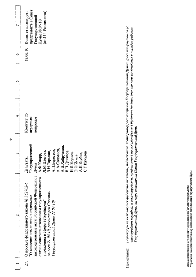 "О КАЛЕНДАРЕ РАССМОТРЕНИЯ ВОПРОСОВ ГОСУДАРСТВЕННОЙ ДУМОЙ СО 2 ПО 18 ИЮНЯ 2010 ГОДА"
