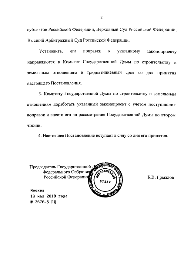 ПОСТАНОВЛЕНИЕ ГД ФС РФ от 19.05.2010 N 3676-5 ГД