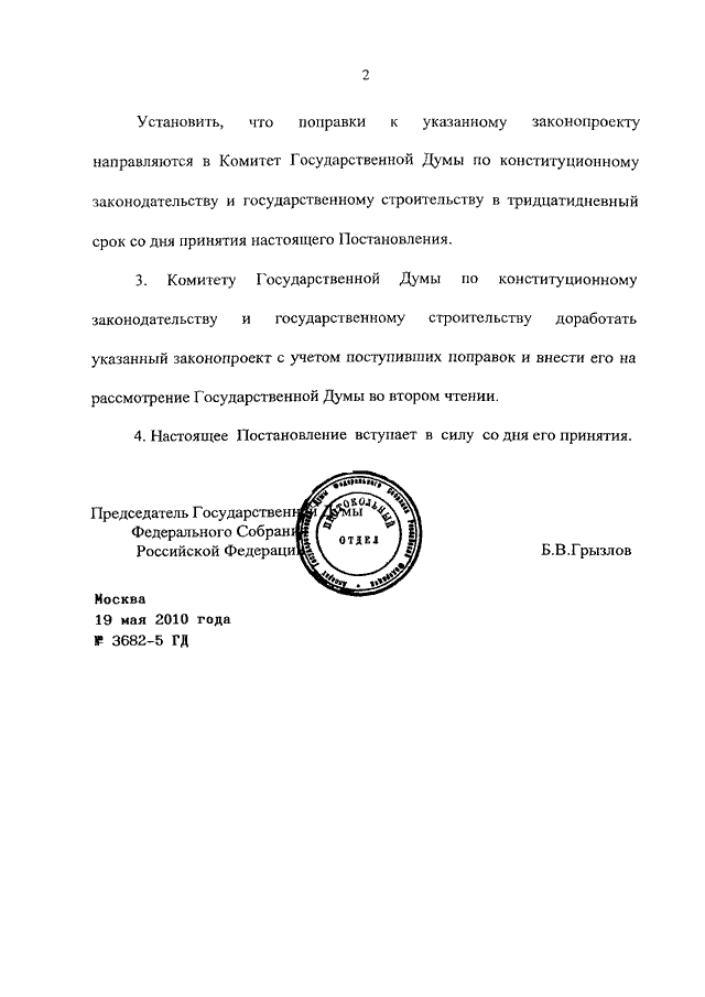 ПОСТАНОВЛЕНИЕ ГД ФС РФ от 19.05.2010 N 3682-5 ГД
