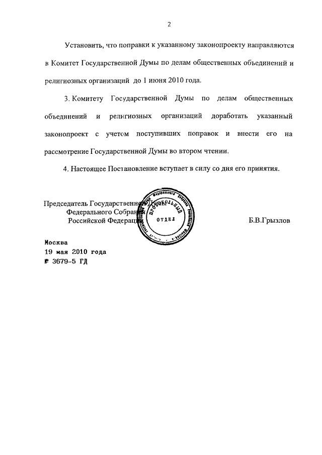 ПОСТАНОВЛЕНИЕ ГД ФС РФ от 19.05.2010 N 3679-5 ГД