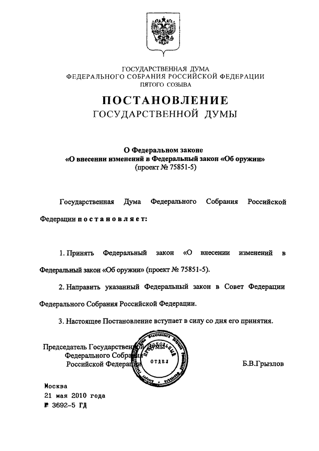 ПОСТАНОВЛЕНИЕ ГД ФС РФ от 21.05.2010 N 3692-5 ГД