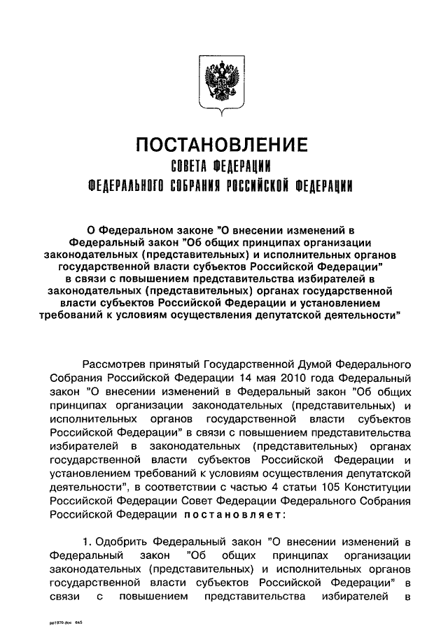 ПОСТАНОВЛЕНИЕ СФ ФС РФ от 26.05.2010 N 192-СФ