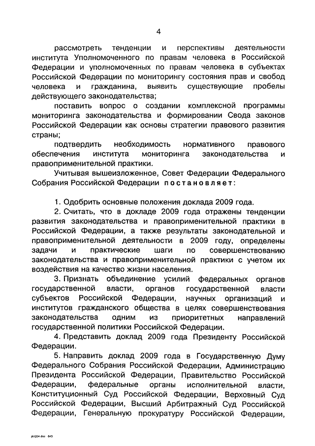 "О ДОКЛАДЕ СОВЕТА ФЕДЕРАЦИИ ФЕДЕРАЛЬНОГО СОБРАНИЯ РОССИЙСКОЙ ФЕДЕРАЦИИ 2009 ГОДА "О СОСТОЯНИИ ЗАКОНОДАТЕЛЬСТВА В РОССИЙСКОЙ ФЕДЕРАЦИИ"