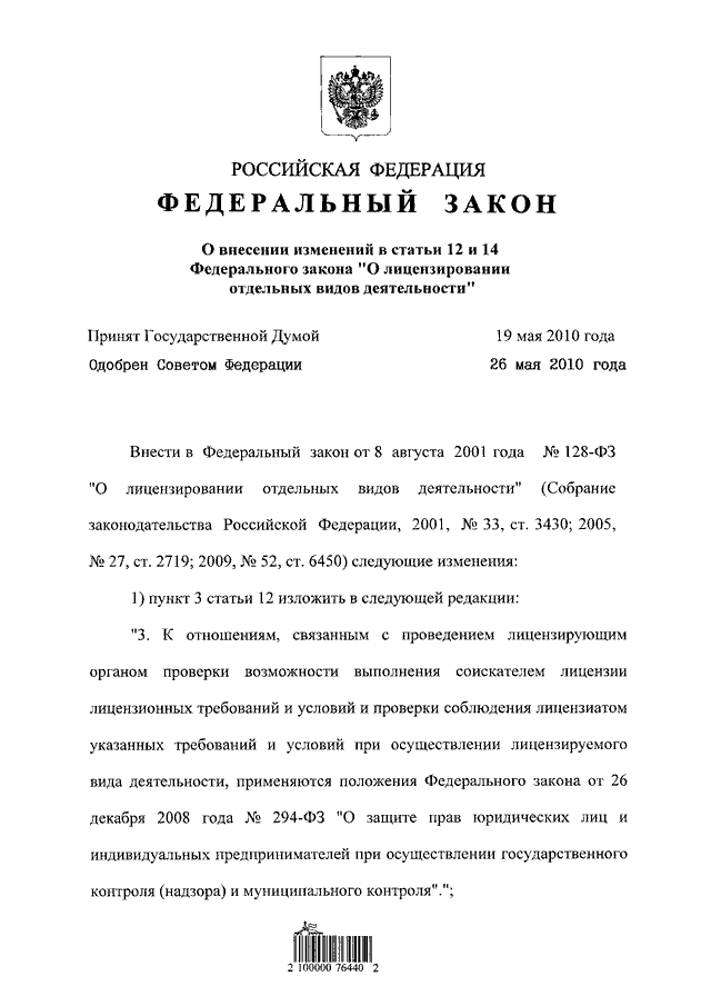 "О ВНЕСЕНИИ ИЗМЕНЕНИЙ В СТАТЬИ 12 И 14 ФЕДЕРАЛЬНОГО ЗАКОНА "О ЛИЦЕНЗИРОВАНИИ ОТДЕЛЬНЫХ ВИДОВ ДЕЯТЕЛЬНОСТИ"