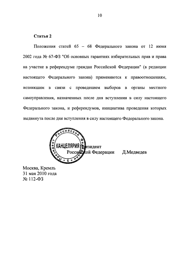 ФЕДЕРАЛЬНЫЙ ЗАКОН от 31.05.2010 N 112-ФЗ