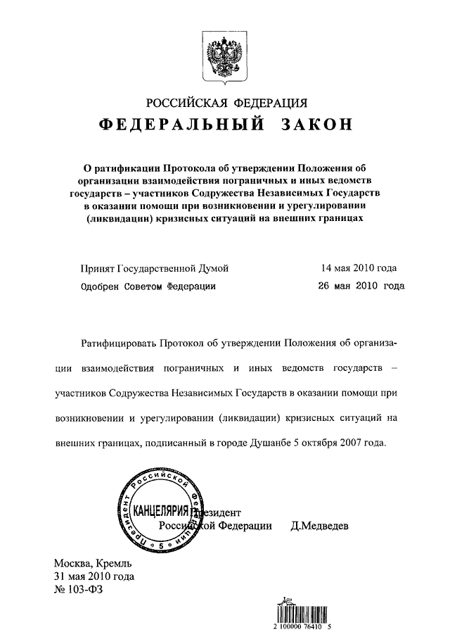 ФЕДЕРАЛЬНЫЙ ЗАКОН от 31.05.2010 N 103-ФЗ