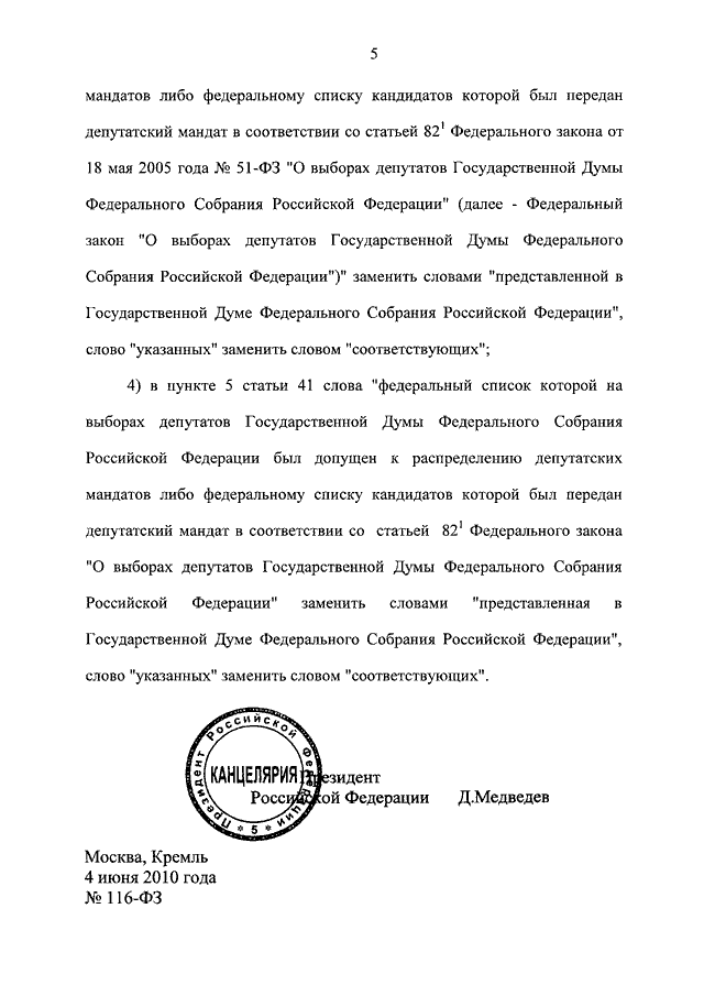 ФЕДЕРАЛЬНЫЙ ЗАКОН от 04.06.2010 N 116-ФЗ