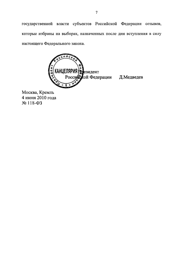 ФЕДЕРАЛЬНЫЙ ЗАКОН от 04.06.2010 N 118-ФЗ