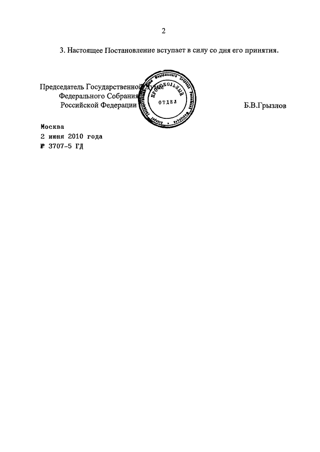ПОСТАНОВЛЕНИЕ ГД ФС РФ от 02.06.2010 N 3707-5 ГД