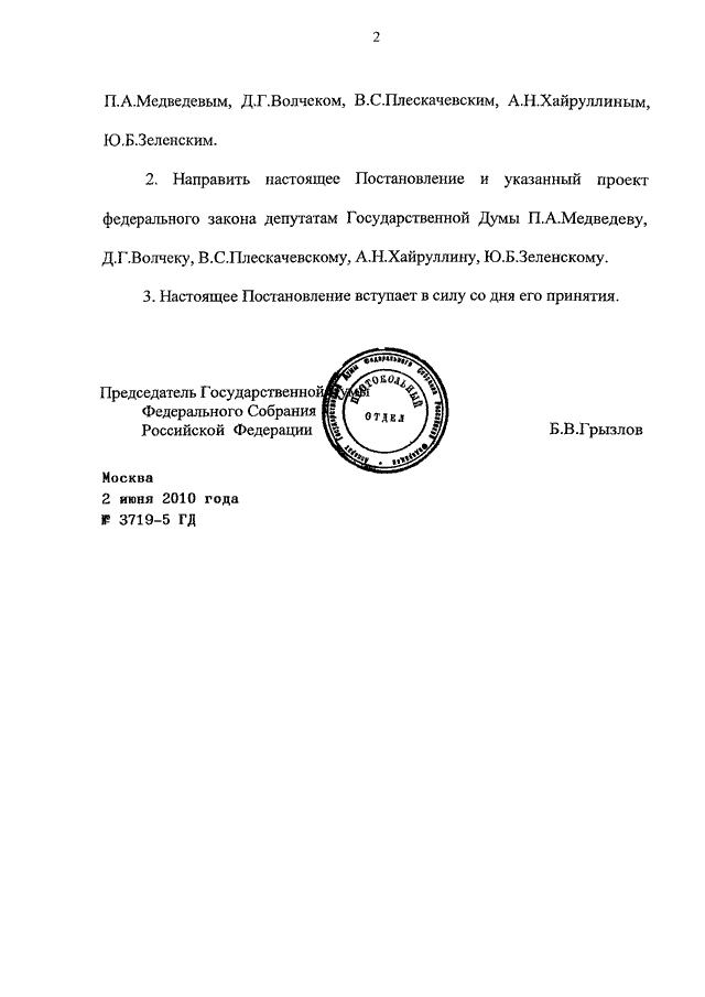 ПОСТАНОВЛЕНИЕ ГД ФС РФ от 02.06.2010 N 3719-5 ГД